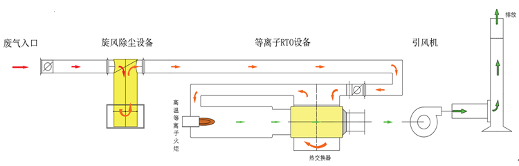等離子RTO是蓄熱式等離子焚燒裝置。 等離子RTO與燃氣RTO的結構相似,工作機理、處理效果完全一致。