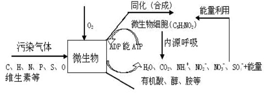 (3)進入微生物細胞的惡臭成分作為營養物質為微生物所分解、利用,從而使污染物得以去除。